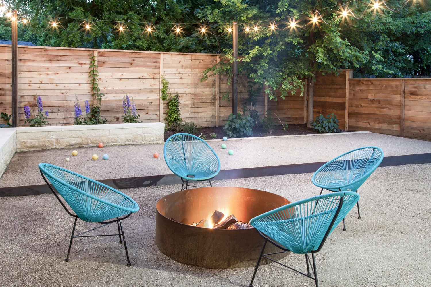 If you’re going for a more interactive space, we love incorporating games such as bocce, cornhole, or you could even try an outdoor jenga set! Fire pits add an additional element to any yard, and extend the use of your space so even in the winter months you can be outdoors.
